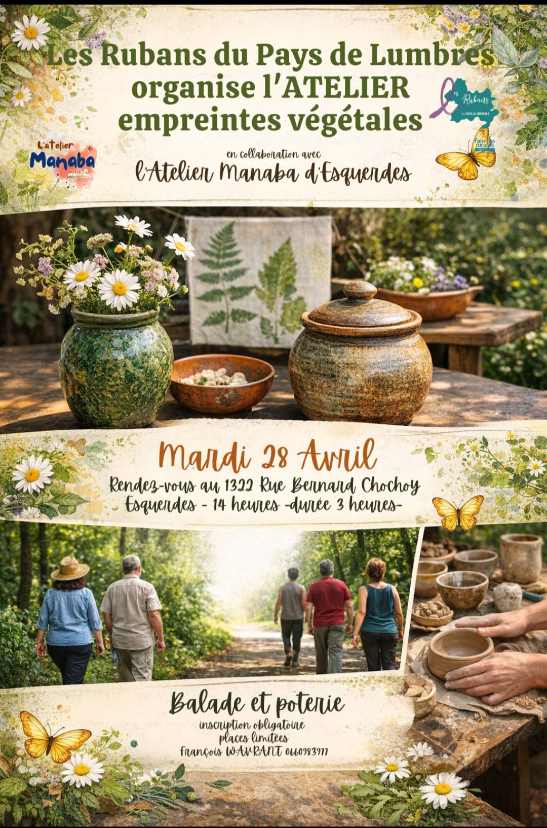 RETOUR Le 28 avril à 14 H, atlier balade et poterie organisé par les Rubans du Pays de Lumbres à Esquerdes 01/04/2026 Divers