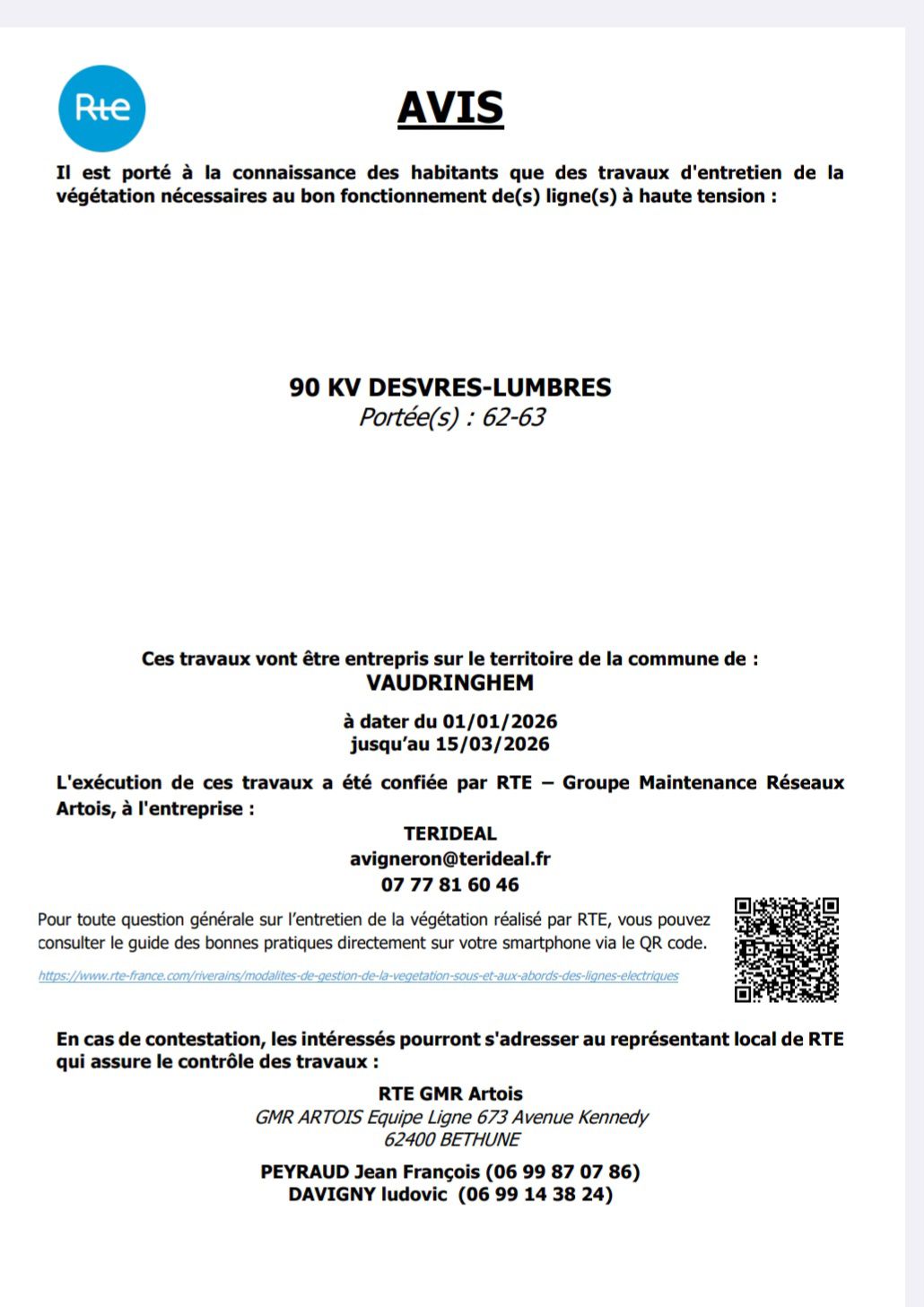 RETOUR Travaux d'entretien par RTE nécessaires au bon fonctionnement de la ligne haute tension 01/01/2026